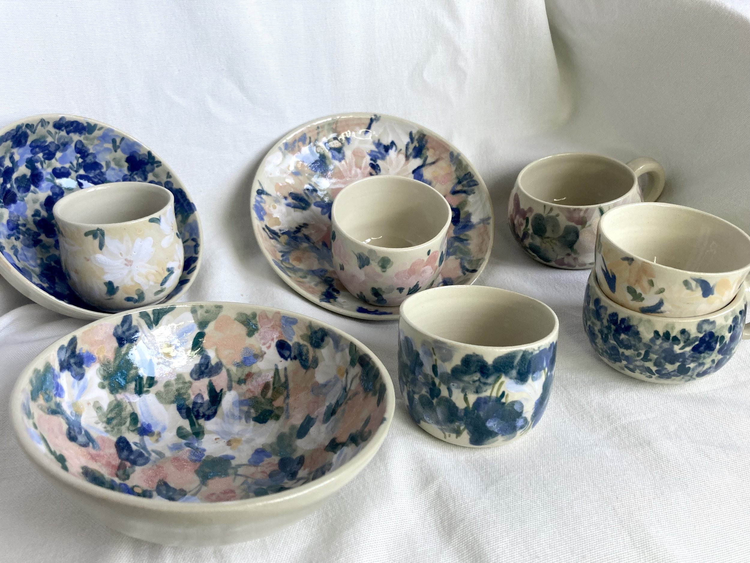 The FLORAL Collection is a gentle intertwining of handcrafted ceramics and illustration. It is the result of a sisterly collaboration, bringing together pottery making of Katja Kovačič and the illustrative work of Manca Kovačič (Manca Illustration). 2025- Ongoing project.